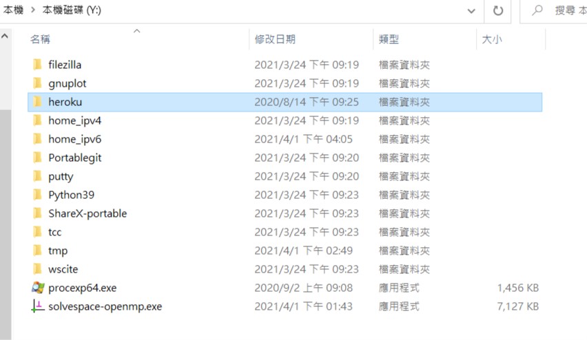3.從 http://a.kmol.info:88/heroku.7z 下載 Heroku cli 程式檔案, 解開至隨身碟 Y: